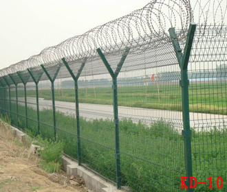 Y型安全防御護(hù)欄網(wǎng)是由V型支架立柱,加強(qiáng)型焊接片網(wǎng),安全防盜連接件和熱鍍鋅刀片刺籠組成加強(qiáng)度和安全防御性級(jí)別很高。近年來(lái),被廣泛應(yīng)用在機(jī)場(chǎng),軍事基地等高安全場(chǎng)所。
