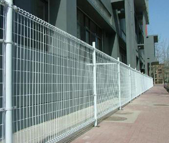 雙圈護(hù)欄網(wǎng)是用冷拔低碳鋼絲焊接成網(wǎng)筒狀卷邊與網(wǎng)面一體,采用鍍鋅進(jìn)行防腐處理,具有很強(qiáng)的耐腐蝕性,然后進(jìn)行噴、浸塑,各種顏色的噴、浸塑;然后連接附件與鋼管支柱固定。經(jīng)過(guò)幾年的風(fēng)霜雨雪,太陽(yáng)的暴曬,還是光亮如新,抗紫外線能力極強(qiáng)。綠色的草坪在白色金屬網(wǎng)的襯托下,顯得清新整潔。