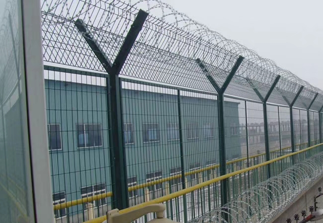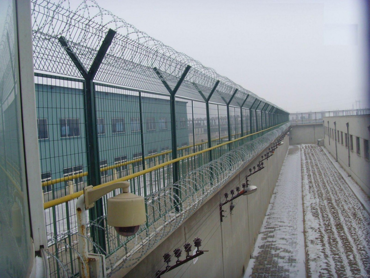 監(jiān)獄護(hù)欄網(wǎng)又稱作“Y型安全防御護(hù)網(wǎng)”,是由V型支架立柱,加強(qiáng)型焊接片網(wǎng),安全防盜連接件和熱鍍鋅刀片刺籠組成強(qiáng)度和安全防御性級(jí)別很高。近年來,被廣泛應(yīng)用在監(jiān)獄,軍事基地等高安全場(chǎng)所。(注:如果在監(jiān)獄護(hù)欄網(wǎng)頂部加裝刀片刺絲、刀片刺繩后又很好的增強(qiáng)了安全防護(hù)性能)。